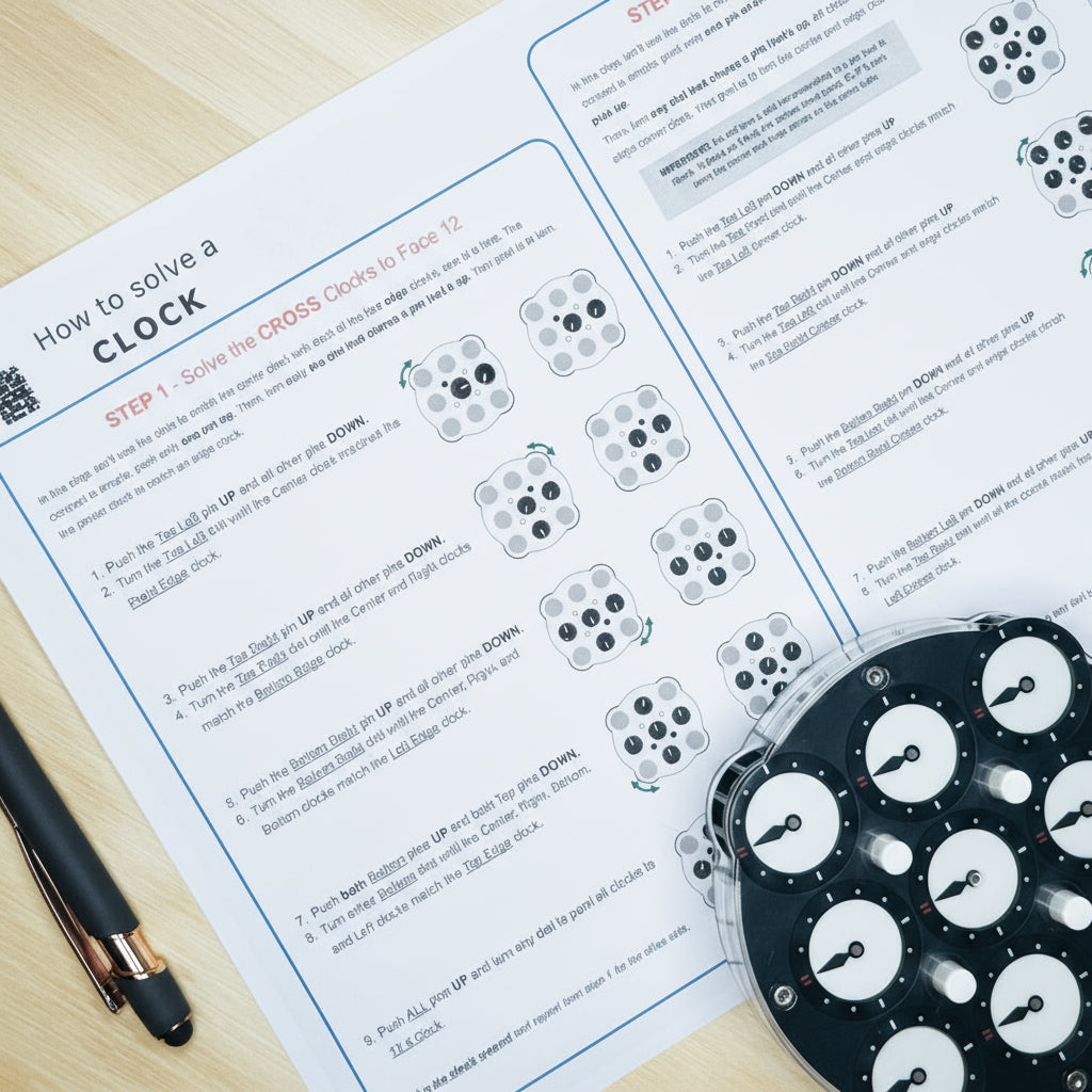 FREE online instructions are available here -> How to solve a Clock Puzzle